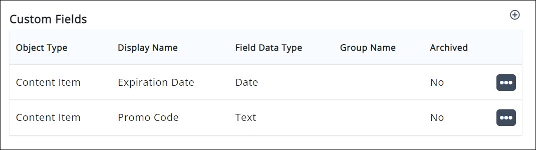 - On the Edit Content List screen scroll to the Custom Fields section.