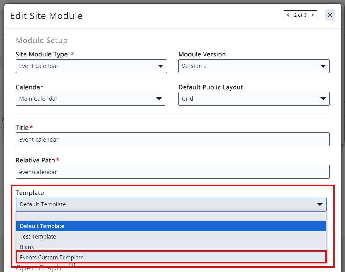 3. Give your template a name (for ex. Events Custom Template)