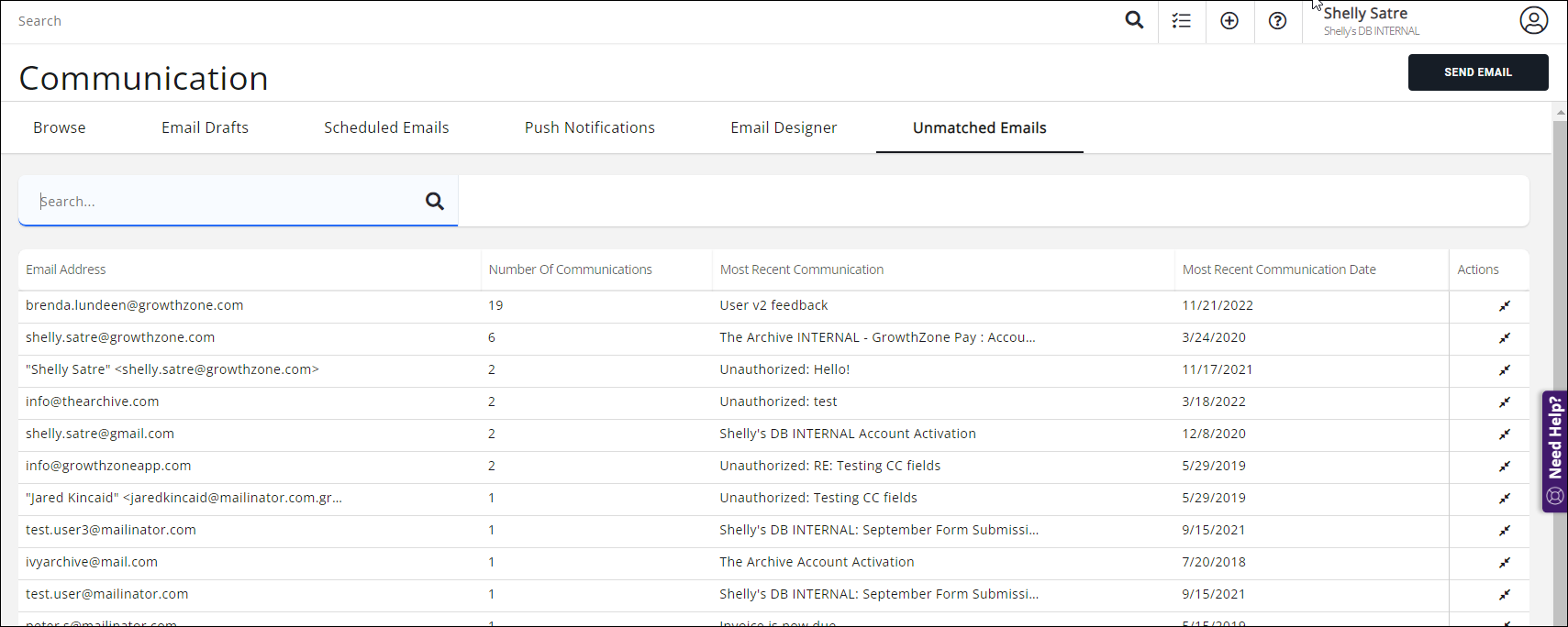 - A list of all unmatched emails will be displayed, to match these to a contact, click the Match