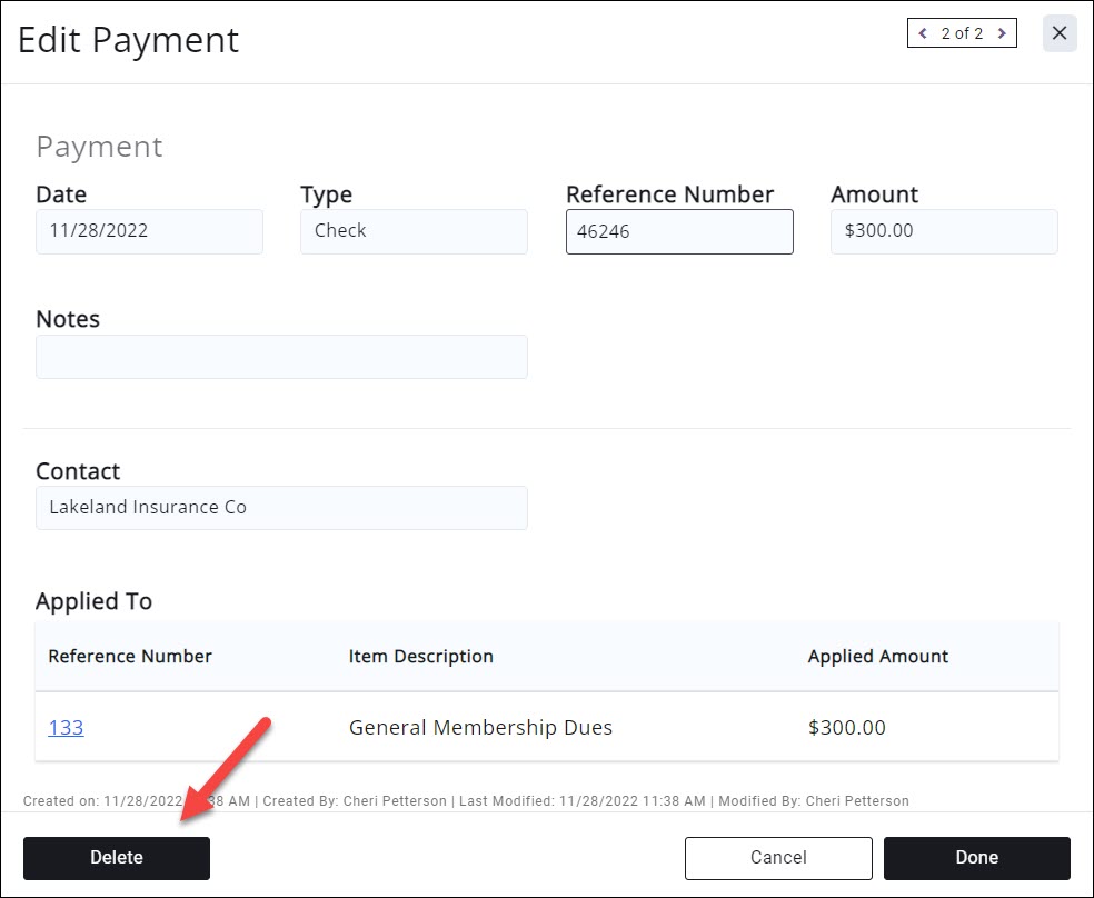- Click OK to confirm that you wish to delete this payment.