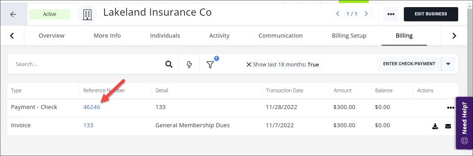 - Select the member's Billing tab.
