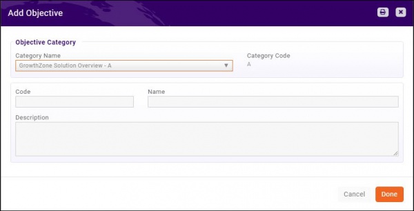 - Category Name: The category name will automatically be populated with the category to which you chose to add the objective.