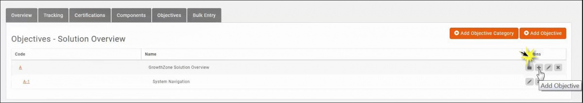 icon in the Actions column of the Category/Sub-Category to which you want to add the Objective.