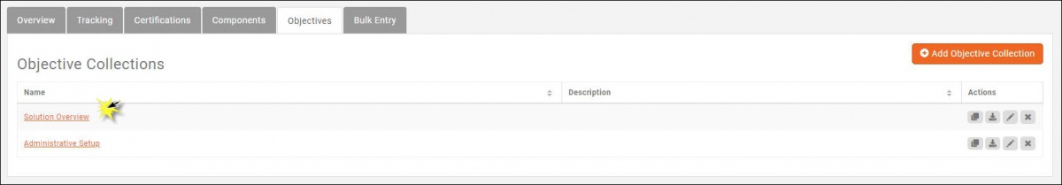 - On the Objectives tab, click on the desired Collection Name.