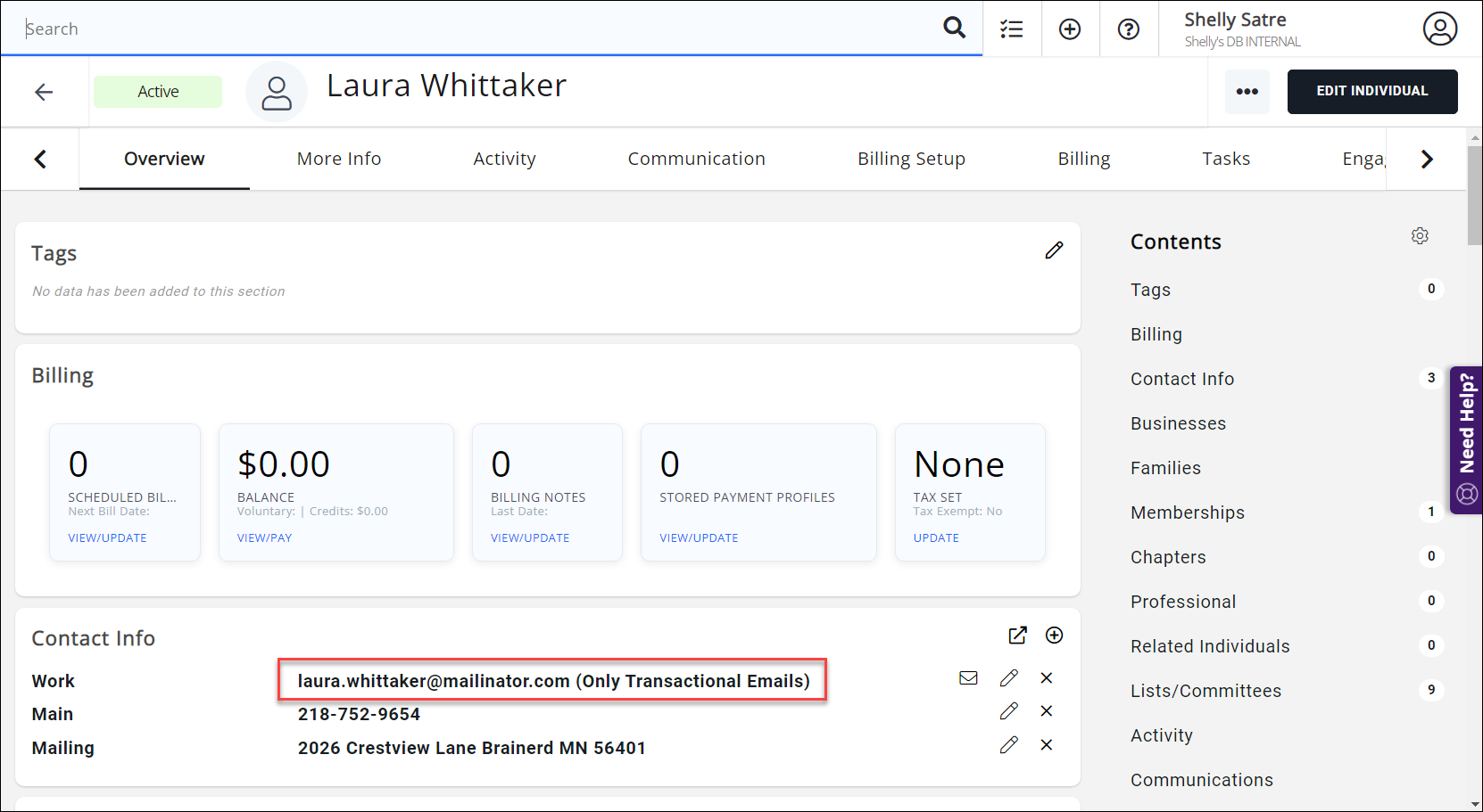 - Once the import is complete, check one of your contact records included in the upload; their email will now display "Only Transactional Emails" and will only receive invoicing and receipt-based communications.