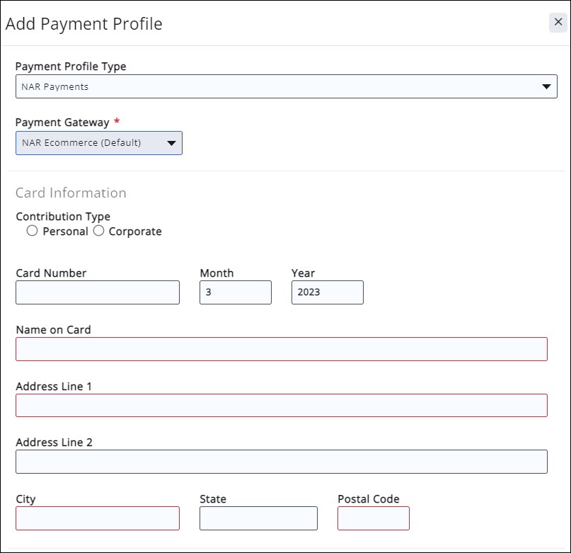 - Select the Payment Profile Type from the list.