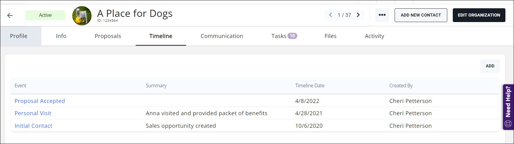 Clicking into a timeline item will display additional notes (if entered) about the timeline activity.
