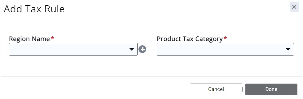 NOTE: When the product categories are added to the regions, these become the Tax Rules displayed on the Tax Rules tab. |