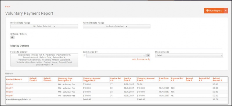 The Voluntary Payment Report will provide you with information on voluntary fees that were either paid or not paid. This can help you in planning for the future of the programs for which you are asking for voluntary fees.