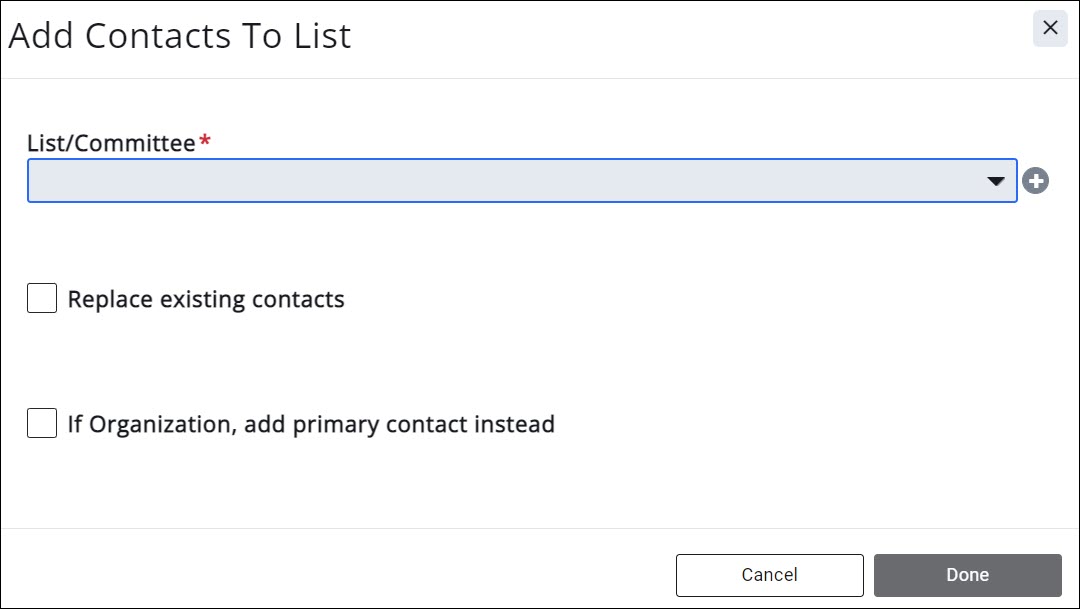 - Select Add to List. See Add Report Contacts to List/Committee for further instructions.