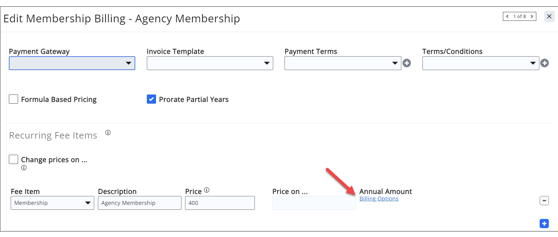 - Add membership pricing as described in Add Pricing to Membership Type. Ensure the Prorate Partial Years is enabled.
