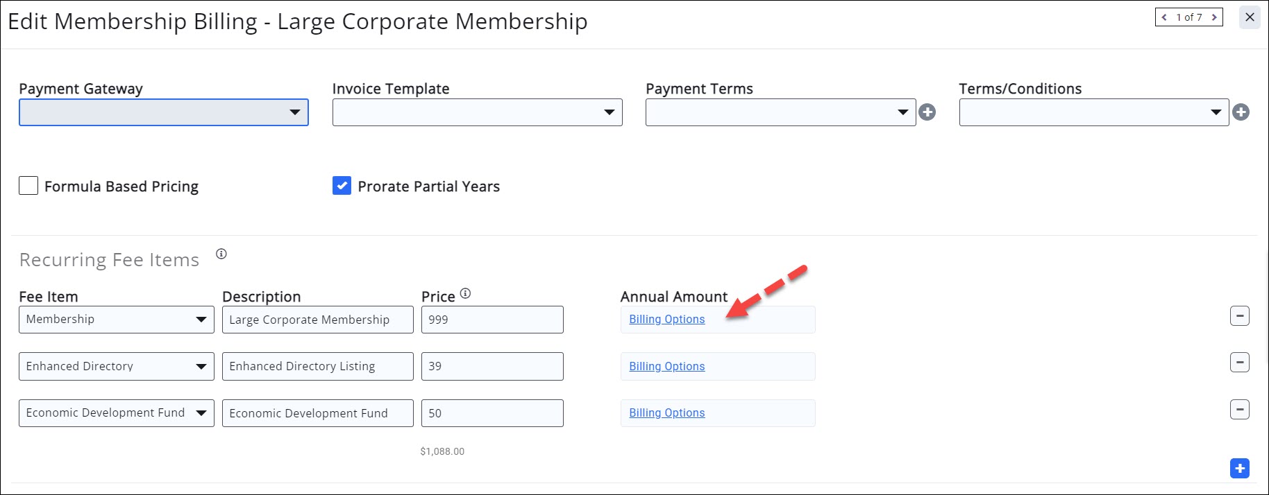 - For the desired fee item, click the Billing Options link