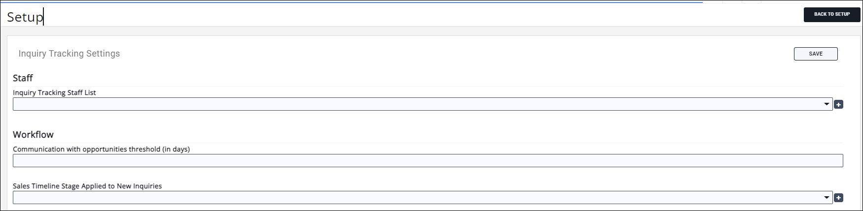 - From the Timeline Item Applied to New Inquiries select the item you want to place on your timeline when a new opportunity is created.