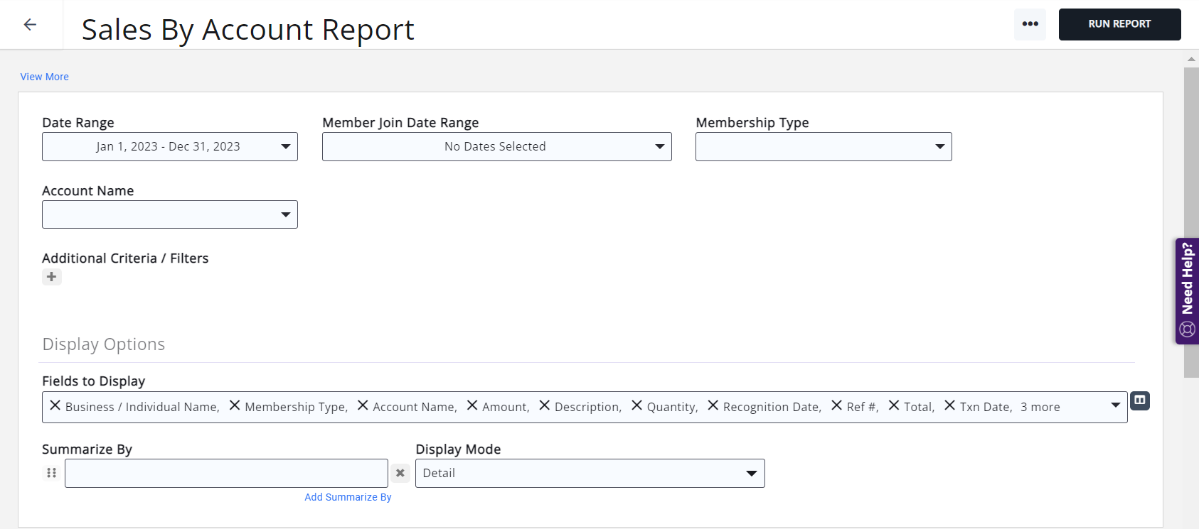 The Sales by Account Report provides a record of all sales for each account in your chart of accounts. It can be used for future budgeting purposes, to view sales generated based on member join dates, to be able to analyze sales generated by new memberships. This report may be useful when reconciling to your accounting software if there are any discrepancies.