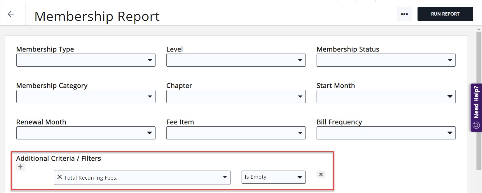 In order for you to generate invoices for upcoming billing, your members must have a scheduled billing assigned on their Billing tab. You can use the Membership Report to find a list of those members who do not have a schedule so you can make the necessary adjustments. In your report, filter on Active membership, and add and Additional Criteria/Filter for Total Recurring Fees = 0. The results, if any, will indicate that you have active members that presumably should have a fee schedule but do not.