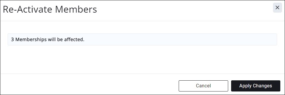 - Click Apply Changes on the confirmation screen. The members will now be reactivated. If you have setup rules for NRDS, LockBox and MLS, under Setup > Membership Settings > Real Estate Settings, these rules will be applied.