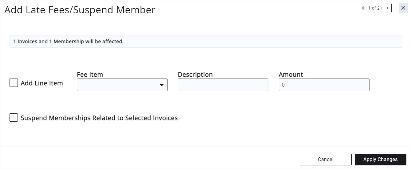 - Click the Suspend Memberships Related to Selected Invoices