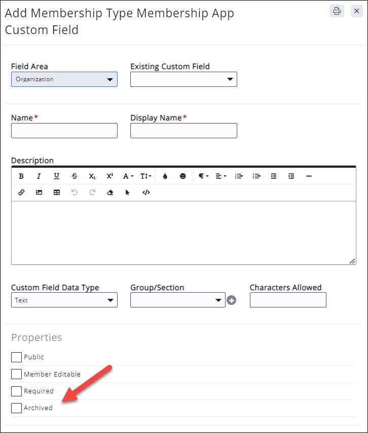 - Scroll to the Membership Application Custom Fields section.