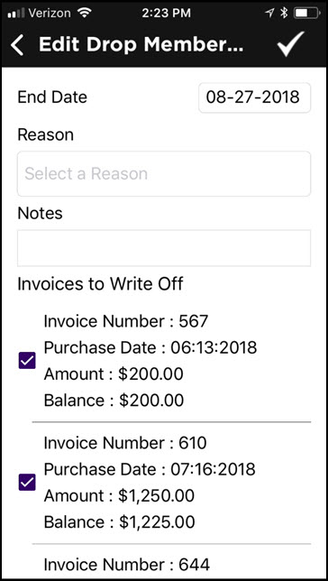 - Enter desired drop information. Refer to Drop Membership for details on drop reasons, open invoices, and staff permissions.