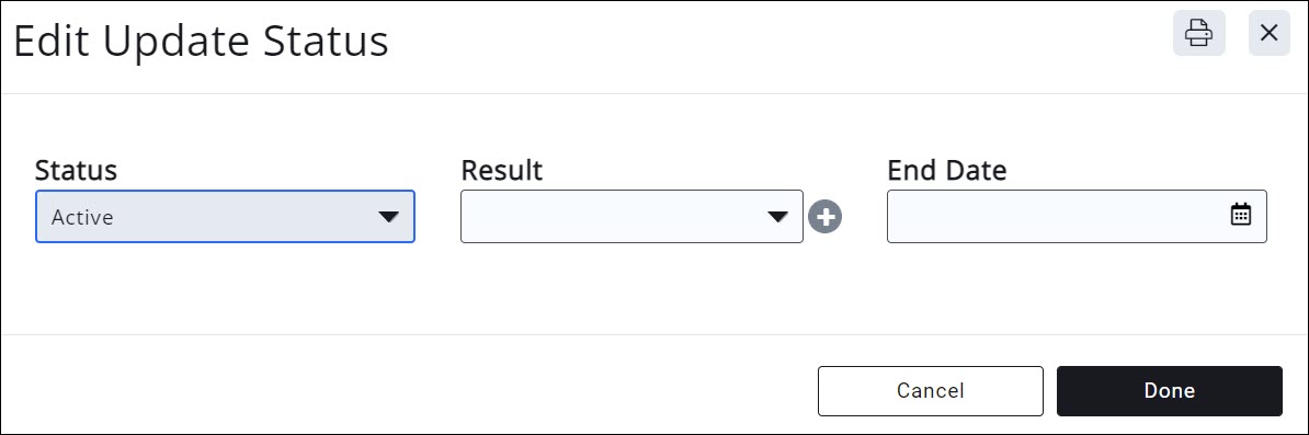 - Click the Update Status button.