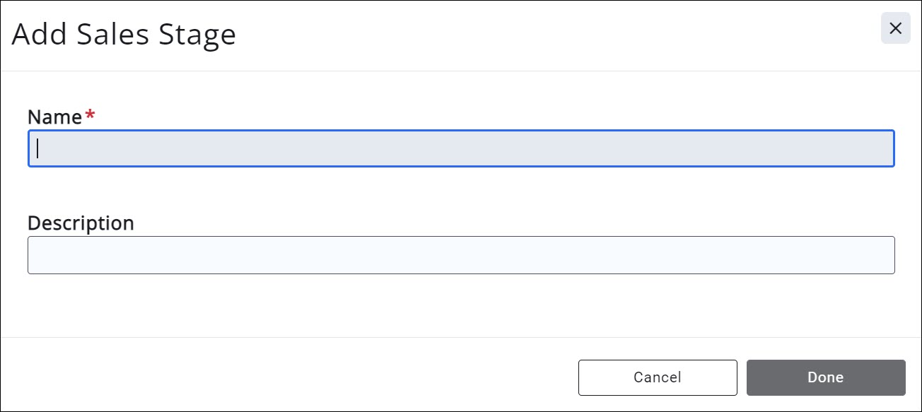 - On the Add/Edit Sales Stage screen, enter a Name and Description for the sales stage