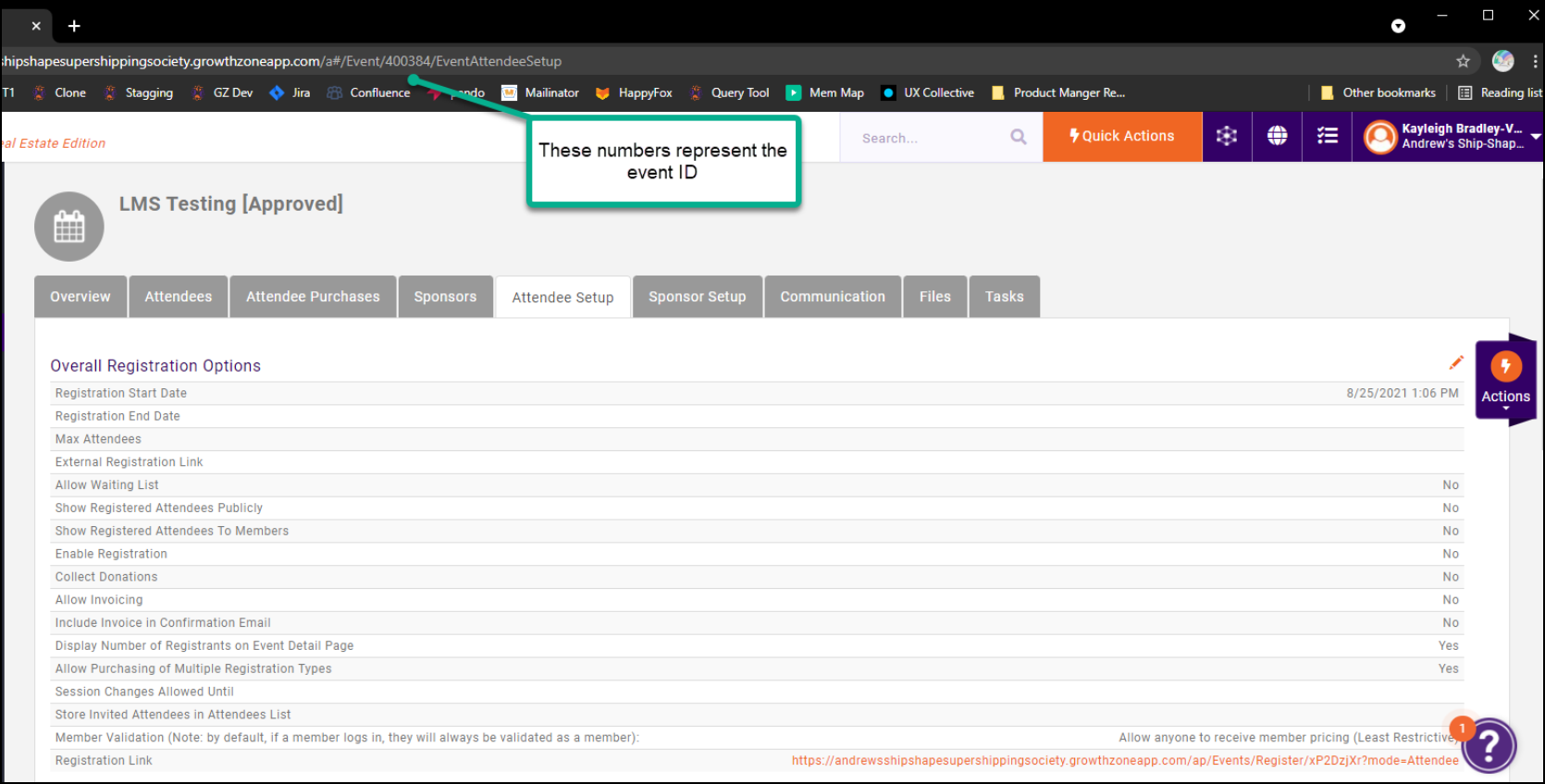 This will be the Registration Link. It can be found on the Attendee Setup tab of the event.