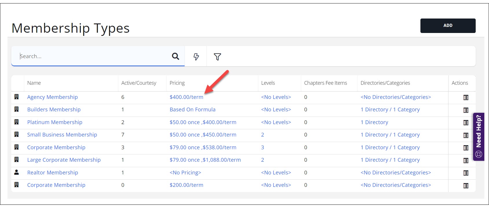 - In Setup > Membership > Types click Pricing for the desired membership.