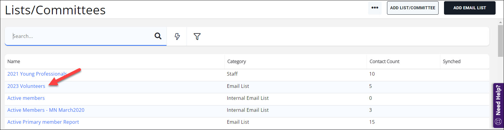 - Click Lists/Committees in the left-hand navigation panel.