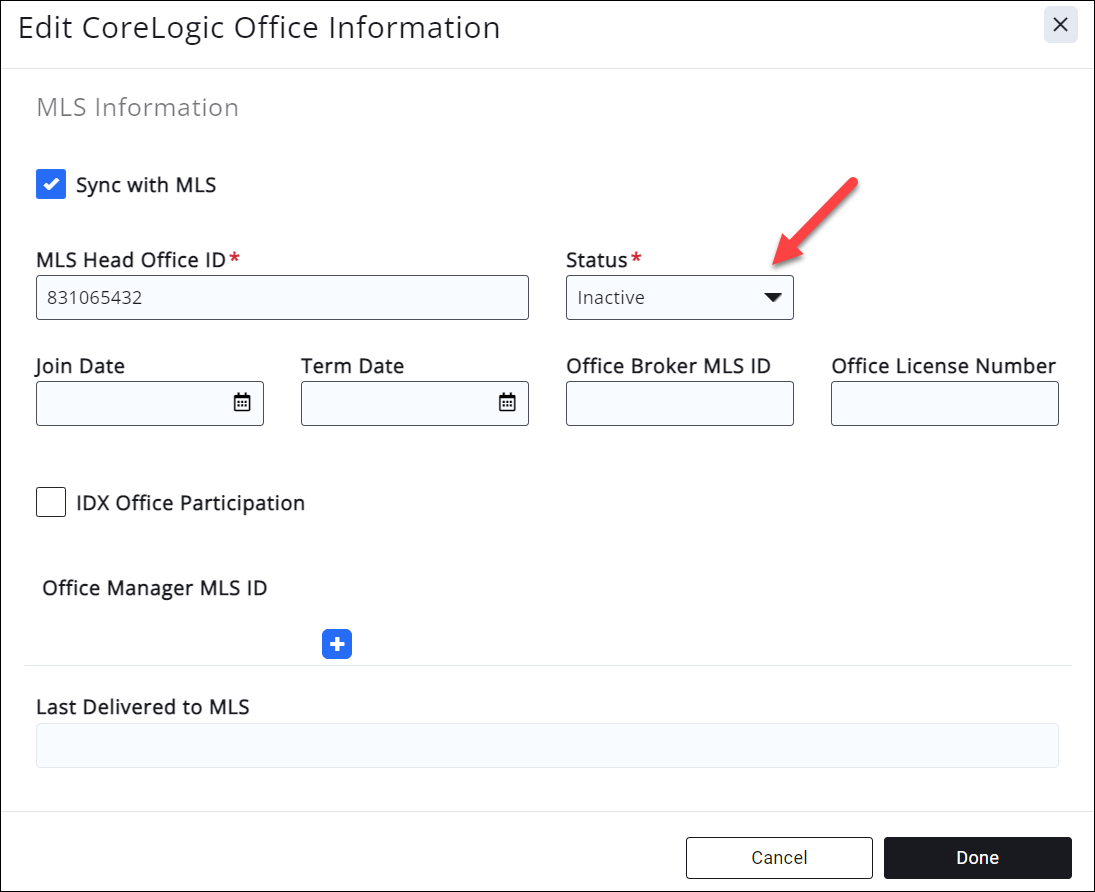 IMPORTANT! Some fields in the MLS Information section can only be set initially for a new account. After that, they can NOT be changed via the integration. To update, make the change in Corelogic, then be sure to update GrowthZone to keep the two systems in sync.