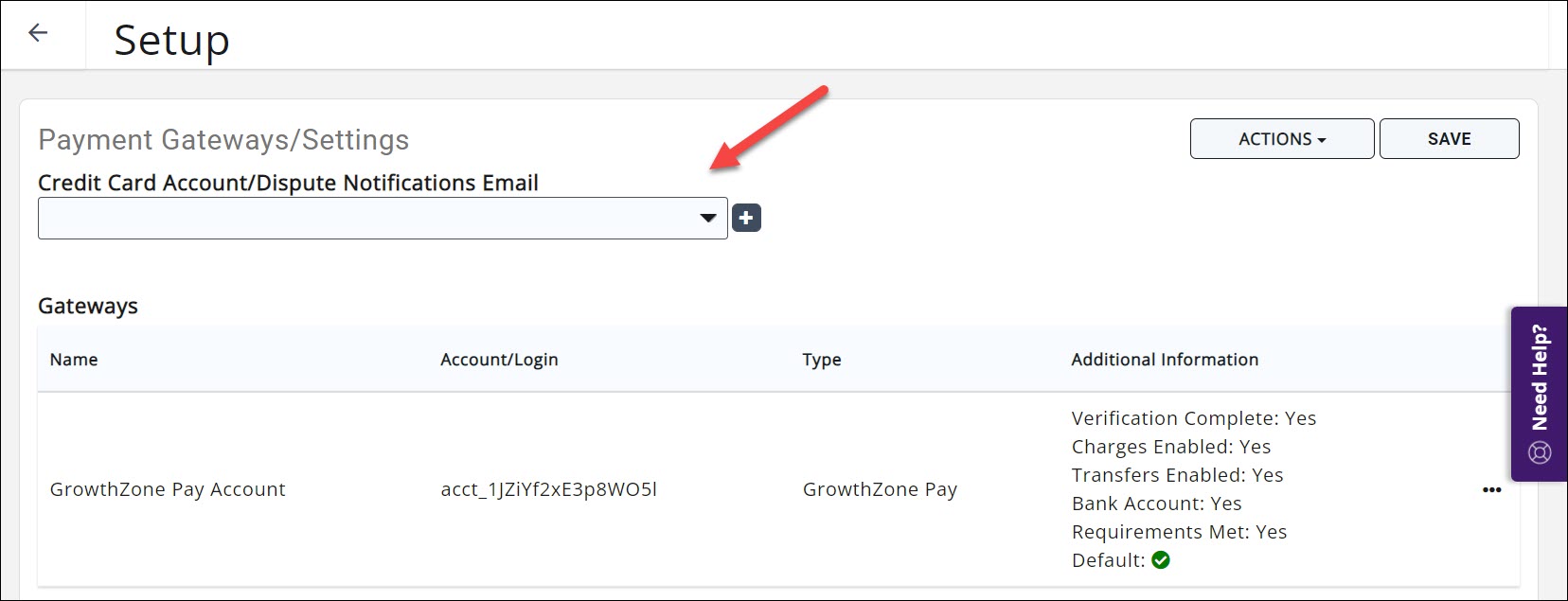 - Select the staff member to whom notifications should be sent from the Credit Card Account/Dispute Notifications Email list. All active staff members will be displayed.