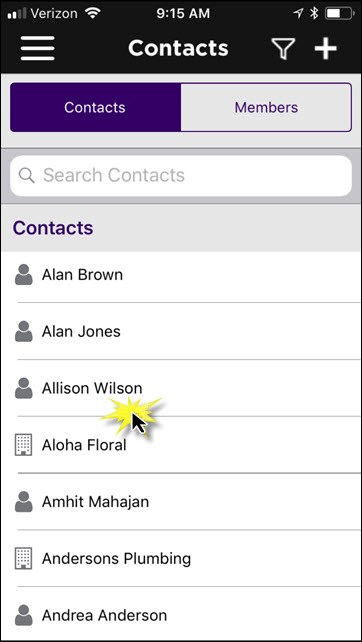 - Select Contacts from the app menu. A list of all contacts in your database will be displayed.