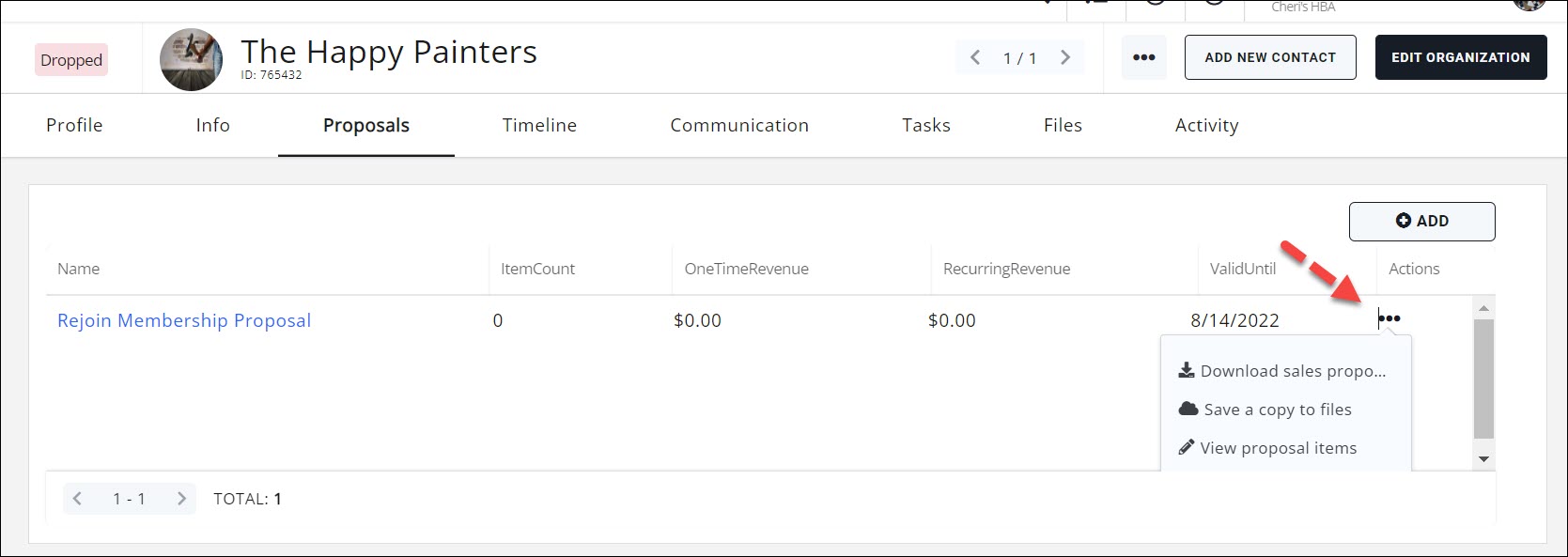 When the proposal is accepted, you will manually wish to change the Sales Stage, and if necessary the Status Reason. The actual setup of membership, and the associated fees will also need to be performed.