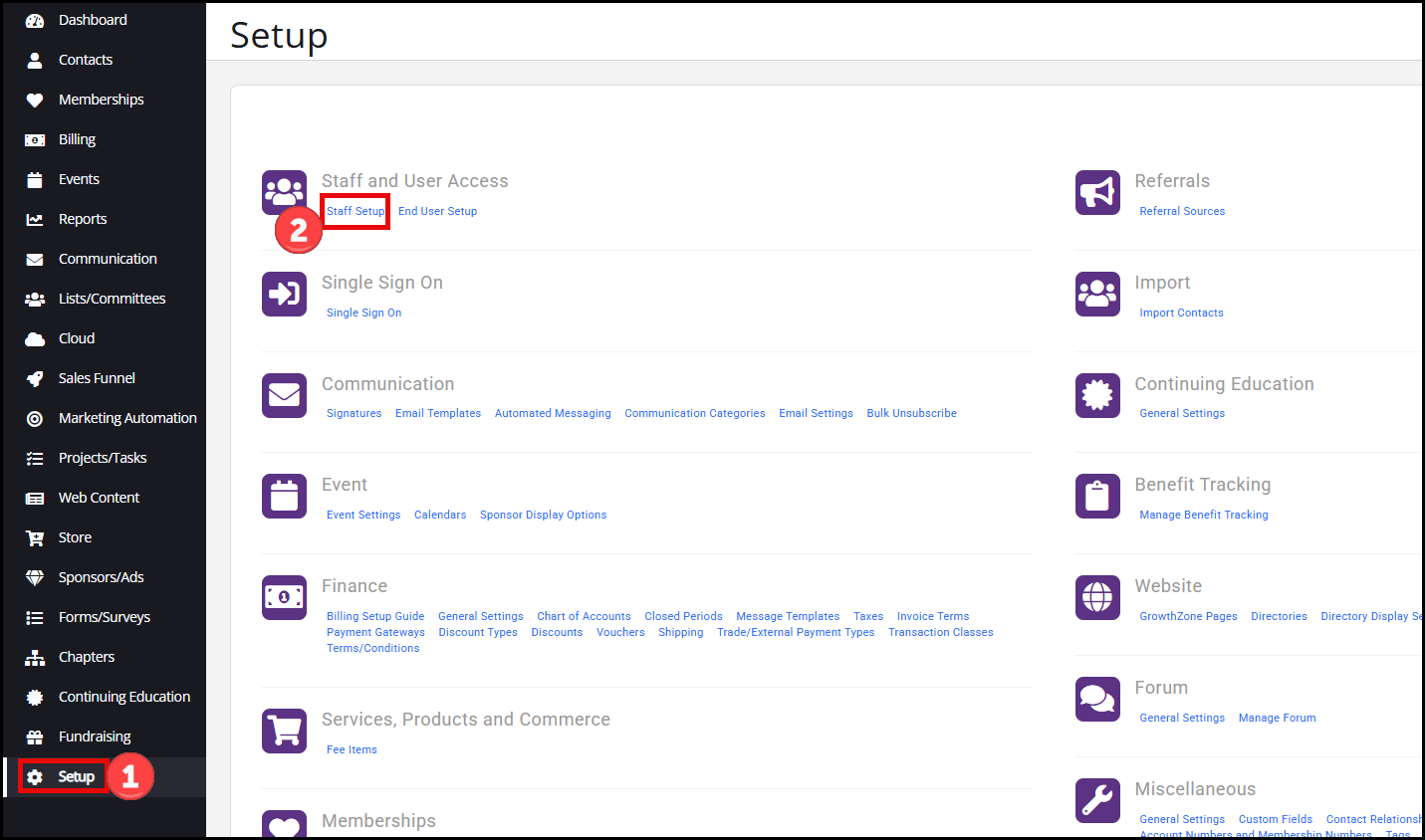 - Go to Setup, then Staff Setup.