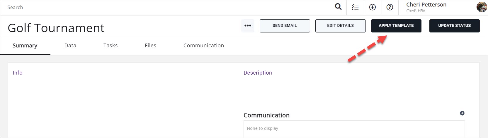 If you have updated a project template and added tasks, you can apply that template to an existing project to pull in the new tasks. The system will look to see if there are existing tasks with the same name and will not add those, but it will add any new tasks that are on the template but don't exist in your project. This makes updating projects much easier when you are still getting your project template(s) finalized.