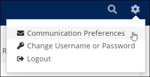 - Click the Gear Icon in the upper right corner of the Info Hub and select Communication Preferences.