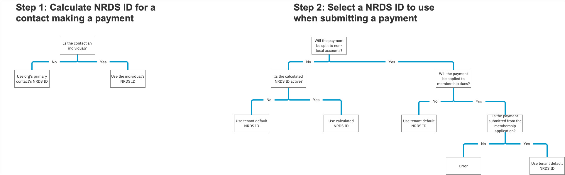 GrowthZone will attempt to send the payer's M1 ID whenever possible, but if unable, will apply the association's default M1 ID. The logic is as follows (click to enlarge):