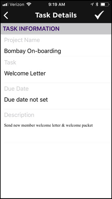 NOTE: Tasks are read-only in the Staff App. No changes may be made to task name, due date or description.