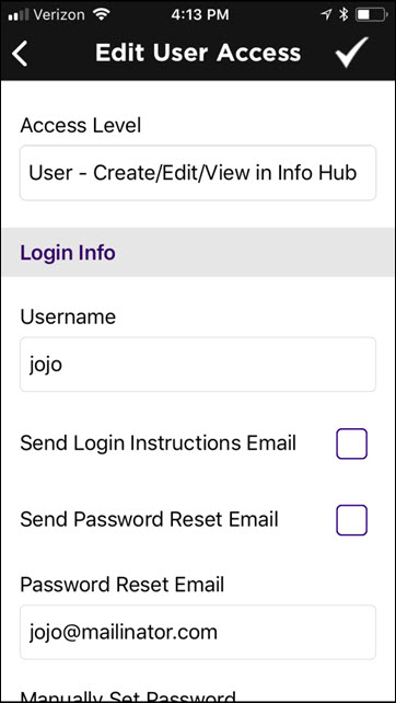 - Click the access level you wish to assign.