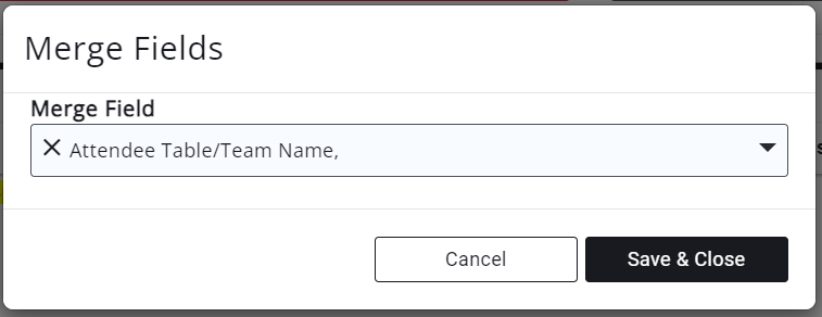 1. Attendee Table/Team Name is available on the Attendees tab when sending emails using Send Email to Registrant, Send Email to Actual Attendees, Sent Event Reminder Email. New email templates created under Setup with a Category of Event will also have this merge field available.