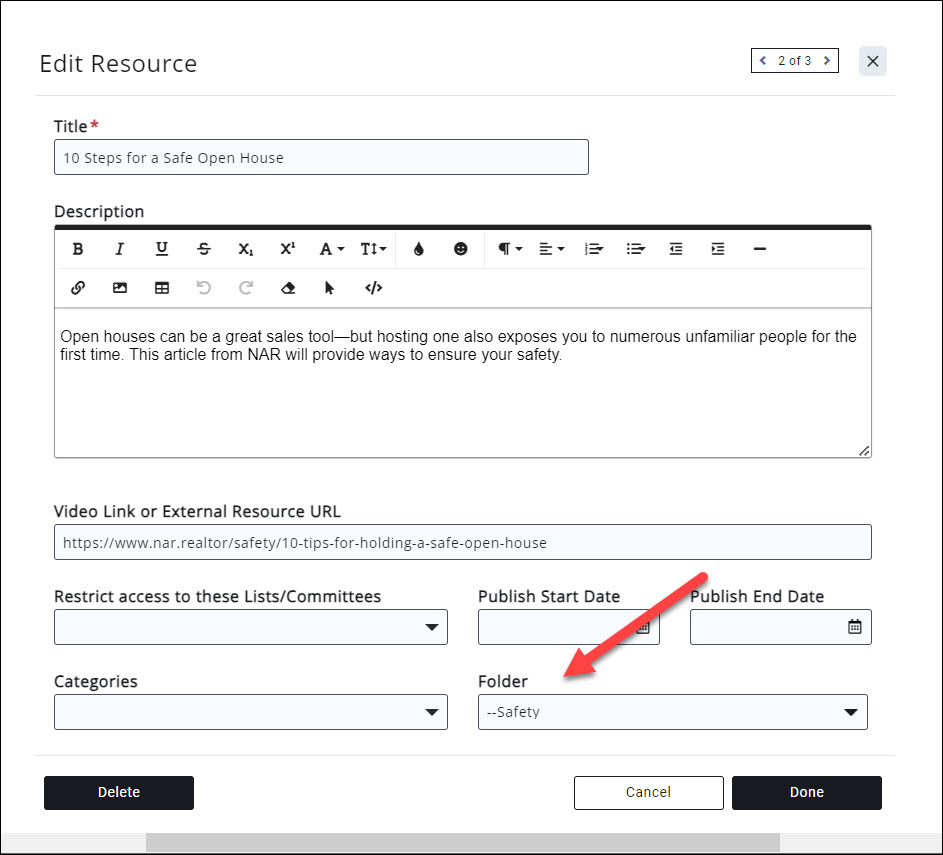 Delete a Folder from Resources