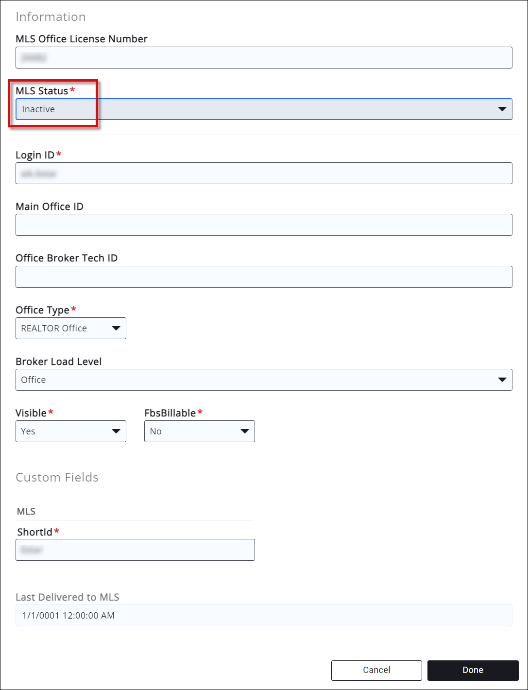 Choosing the correct status from the MLS Status dropdown menu. - Click Done.