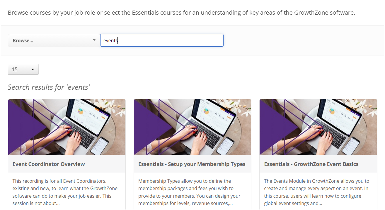 Search in courses... Looking for something specific? Enter a keyword and GrowthZone University will display a selection of courses related to that keyword.