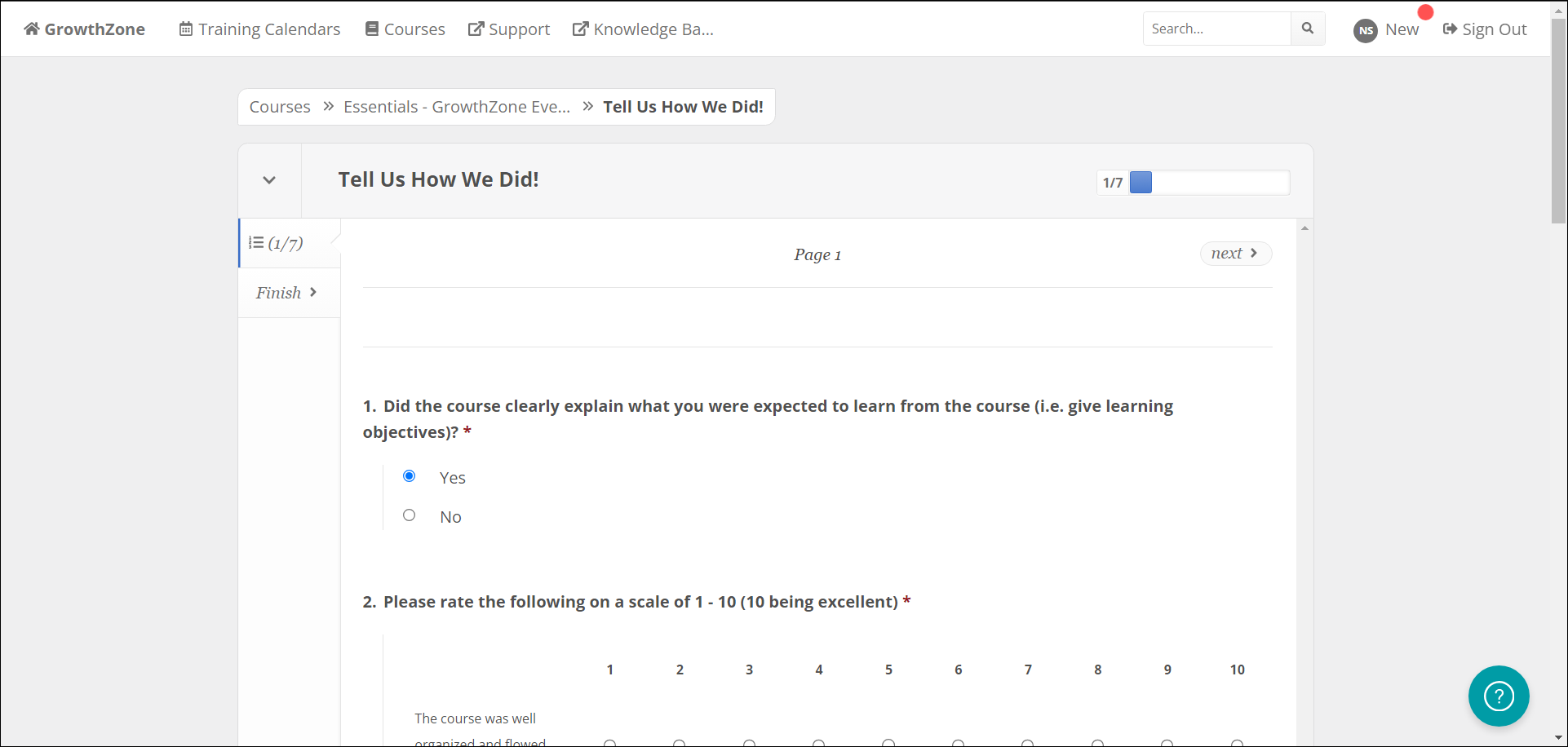 We have completed and passed our assessment, and now the next component is active. Click in and complete the component- in this case, it is a survey asking for opinions on the course and content.