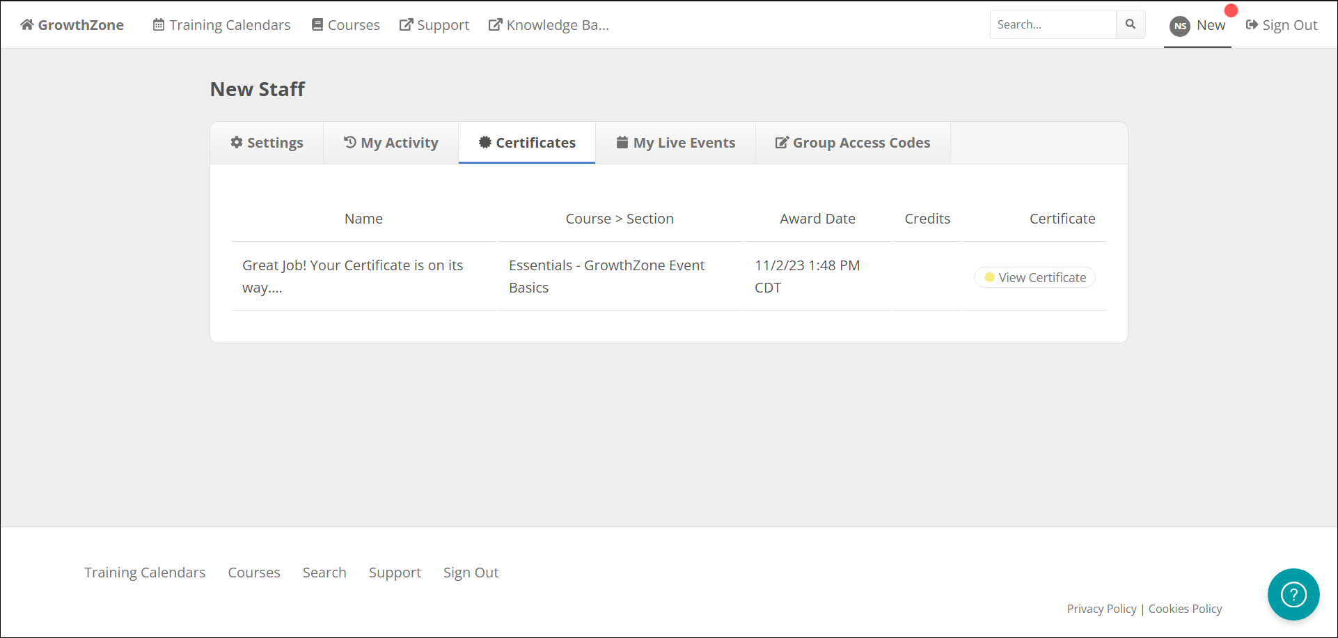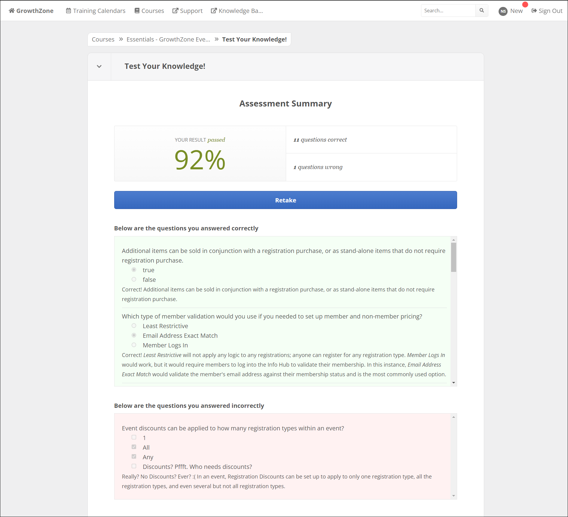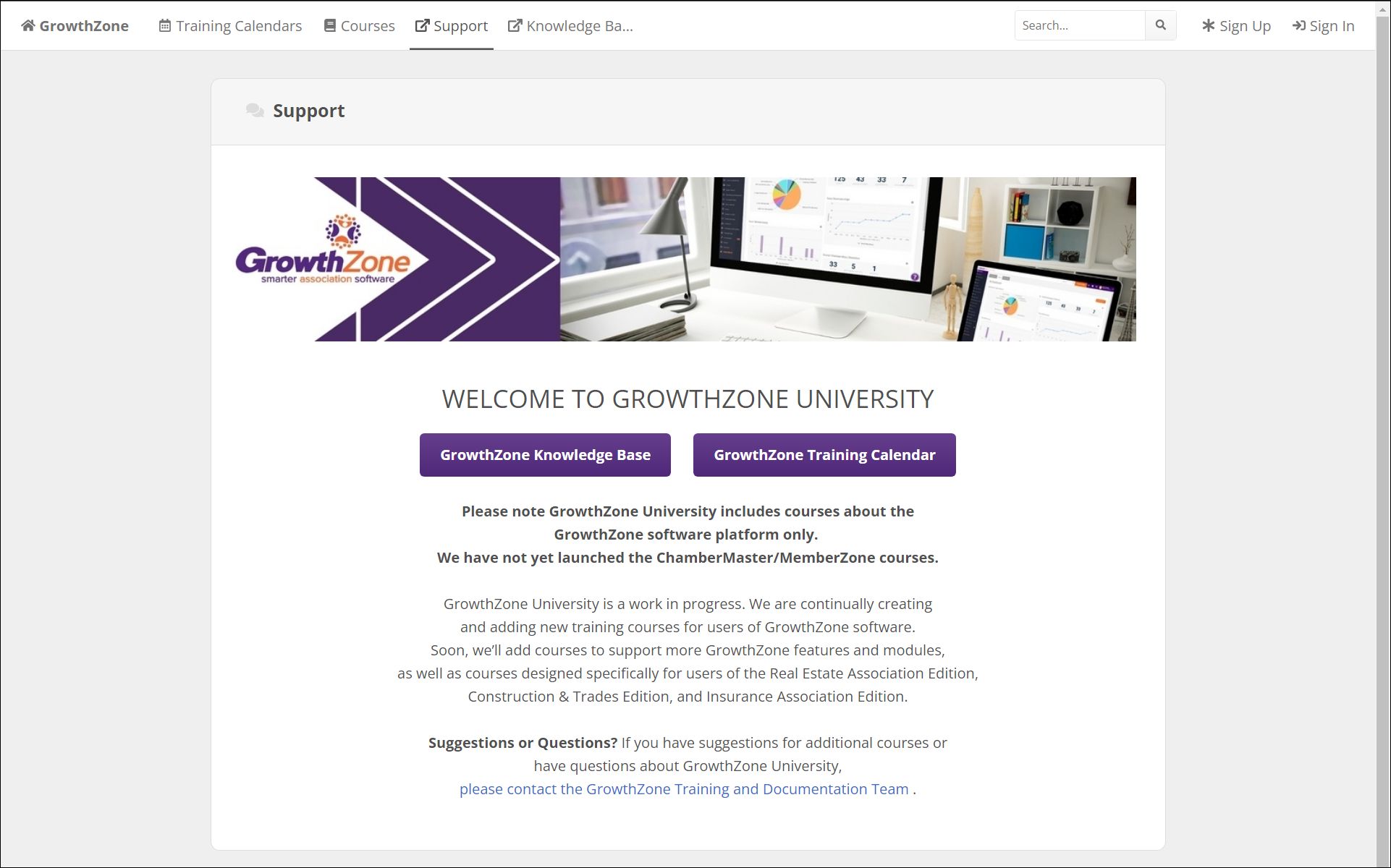 Training Calendars: This link will take you to a page with links to the GrowthZone Knowledge Base, the GrowthZone Training Calendar, and the GrowthZone University Support page.