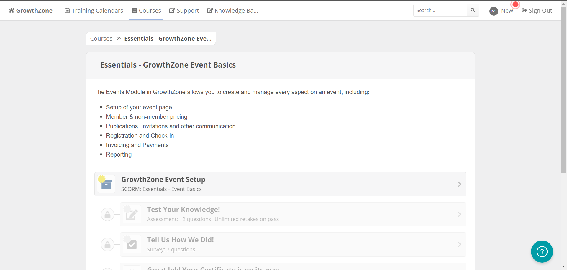 Courses: This link will display all current active courses available on GrowthZone University. You can browse courses by category or search by keyword.
