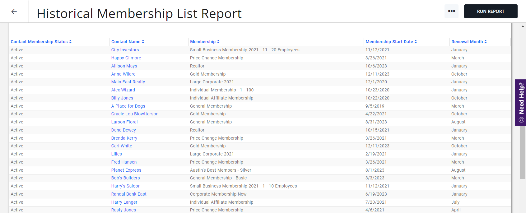 The Historical Membership List Report provides a way to view memberships as of a date in the past. The Membership report only provides a listing of current members. This report will help you to compare membership year over year to better understand your overall membership retention.