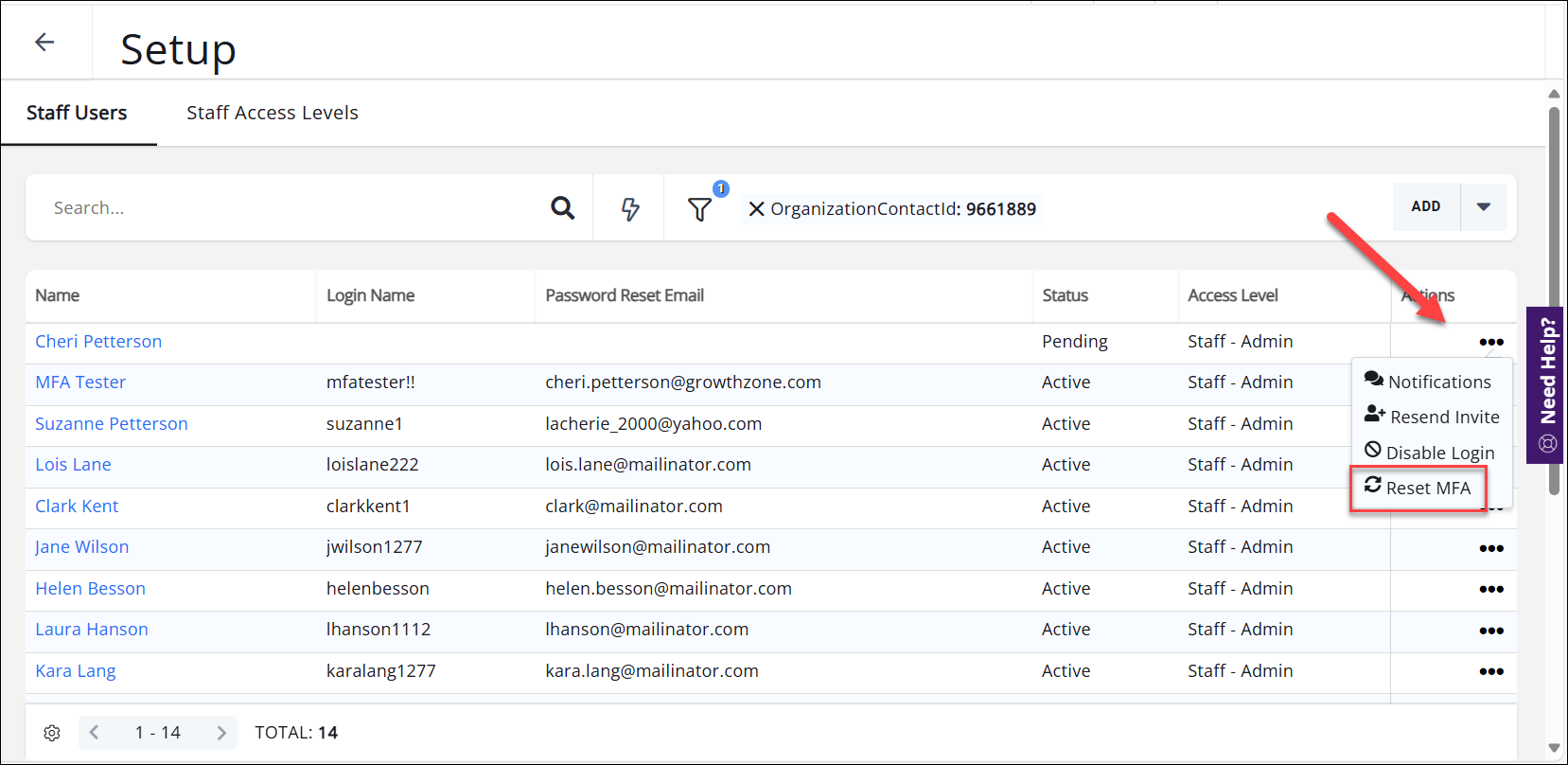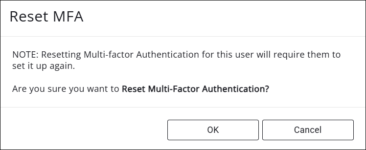 IMPORTANT: A user must have MFA enabled in order to reset the MFA authentication for another user. |