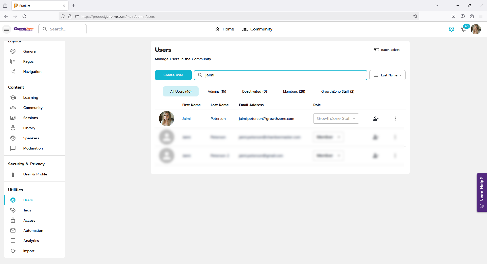 Will be listed in the full list of users with the new role of “GrowthZone Staff”