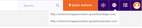 By default, the beginning of the domain that is automatically created for the modules and for the test site are the same. In this example, they both start with ohiotruckingassociation. This can be replaced before creating the website by adding a shorter domain under the CMS Settings tab, otherwise, simply click on the dropdown item ending with “growthzonesites.com” to create the GZCMS test site.