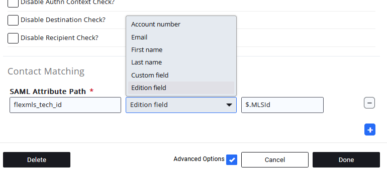 To start with the Contact Matching area is at the end of the SAML Identity Provider area